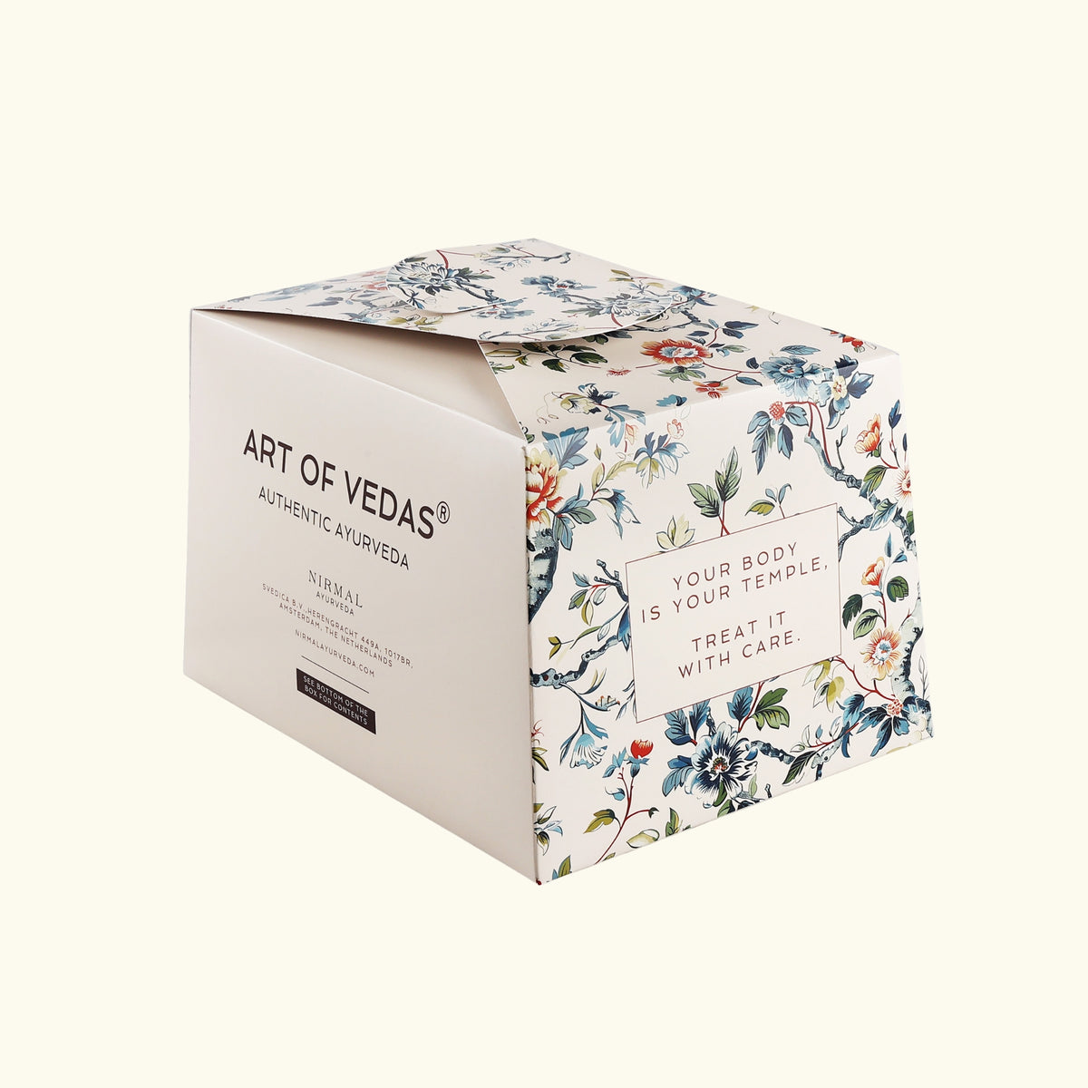 Dit ritueel is meer dan huidverzorging, het is een holistische ervaring die je verbindt met de wijsheid van Ayurveda, en harmonie bevordert tussen je lichaam, geest en ziel. Ideaal voor dagelijks gebruik of als een speciale verwennerij, het is de perfecte manier om voor jezelf te zorgen of het geschenk van welzijn te delen.